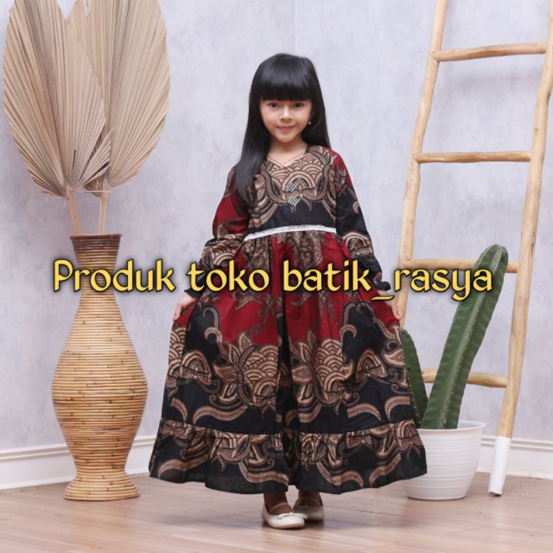 Gamis long maxi dress baju muslim anak perempuan batik 1602, rp90.000 ;